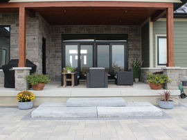 The dimensional step is a solid concrete step designed to resemble a natural stone slab. It comes in three popular lengths: 4' with an 18" tread depth, and 3' and 6' with a 30" tread depth. The step rise is 7".